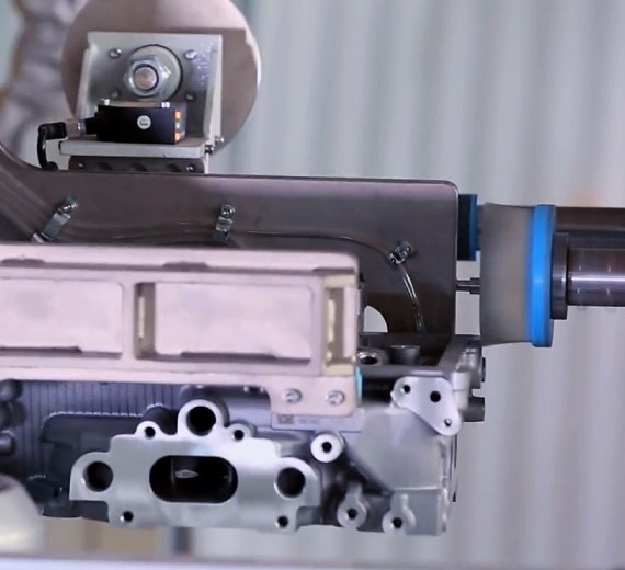 Flexible deburring machine for cylinder heads